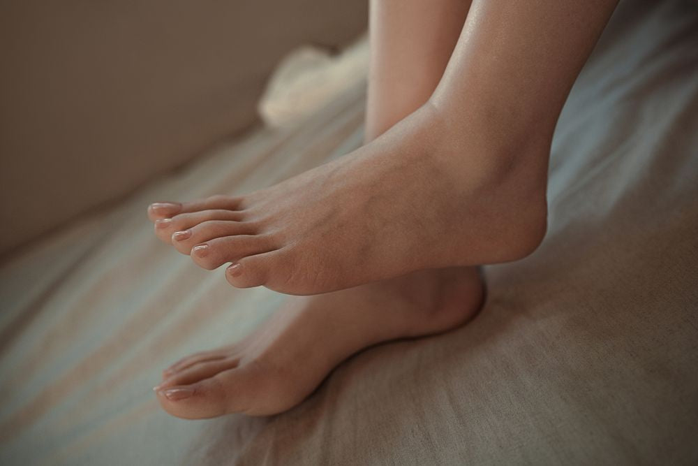 A sex doll is composed of an outer flesh-like material, such as TPE or silicone, which surrounds an internal heavy metallic skeleton. The majority of sex dolls are in 60-90 lb. range. Some sex dolls can weight near 100 lbs. This downward force would easily penetrate through the 0.5-1.0" of flesh on the bottom of the feet if the doll were to be stood up on its own, even once. The "standing feet" option adds threaded bolts to the bottom of the doll's feet, three per foot, which connect directly to the internal skeleton. This way when the doll is stood up, the weight is applied and transferred through the bolts and not transferred through the soft flesh of the bottom of the doll's feet.