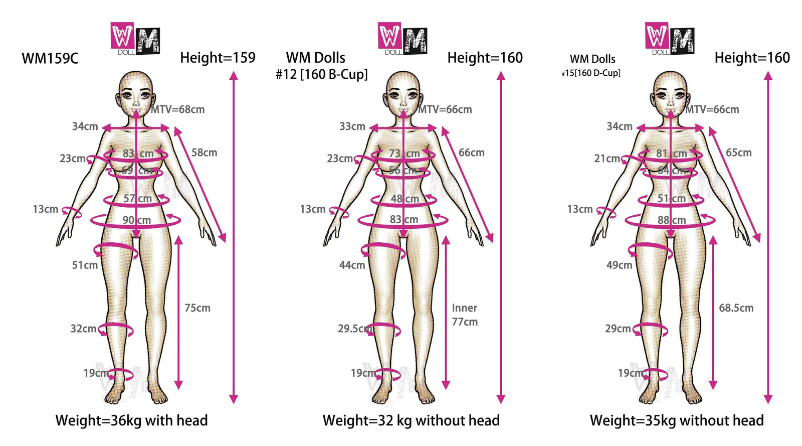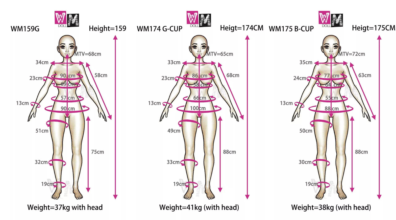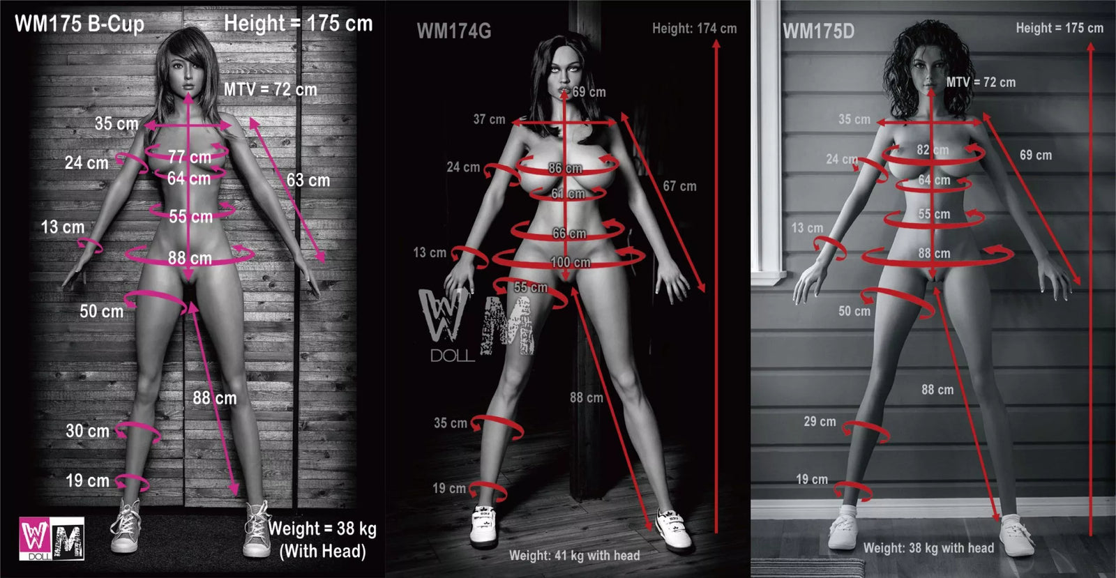 WM Doll はウェブサイトで幅広い身長の人形を提供しており、合計 23 種類のオプションがあります。これらの身長は 149cm から 175cm までで、149cm、151cm、153cm、154cm、161cm は除きます。これらのフルサイズのセックス人形はすべて、実際の人の身長に合わせて設計されており、リアリティを高めていることは注目に値します。